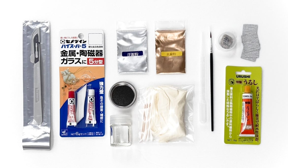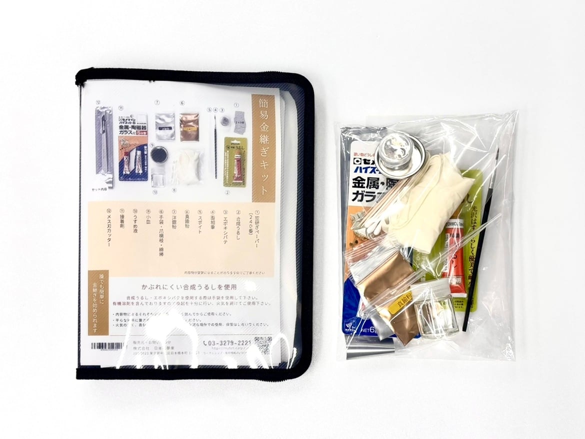 ご自宅で気軽に、そして安全に「金継ぎ」を楽しめる【簡易金継ぎキット】です。